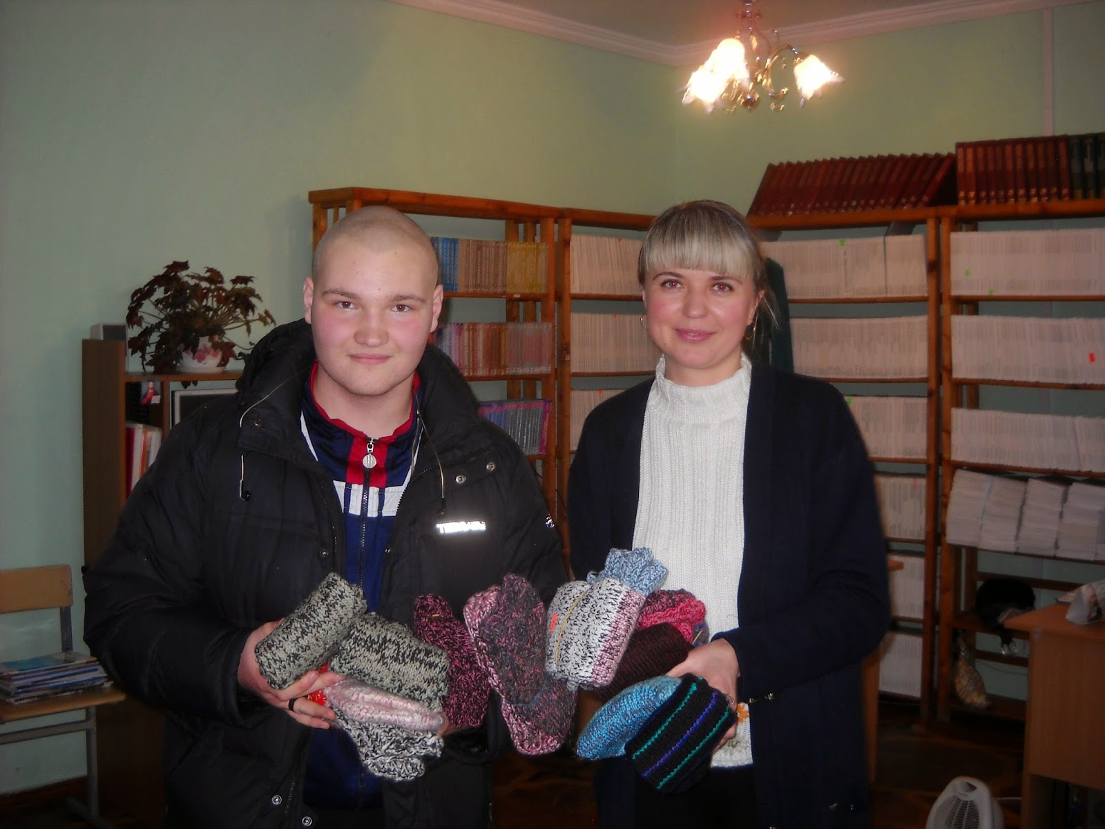 В черговий раз Воїнам АТО працівники бібліотеки передали шкарпетки та шарфики, зв'язані власноруч.